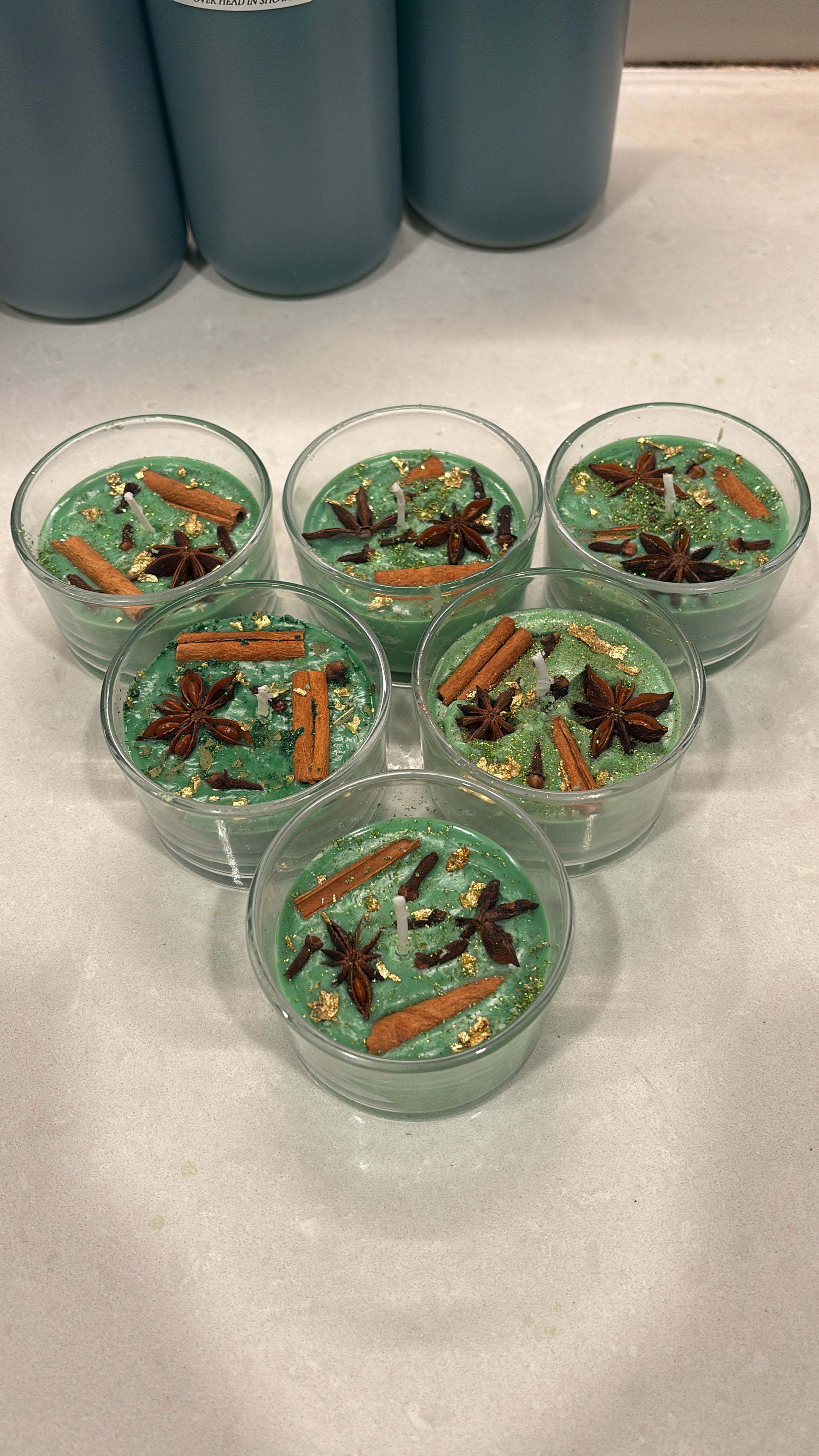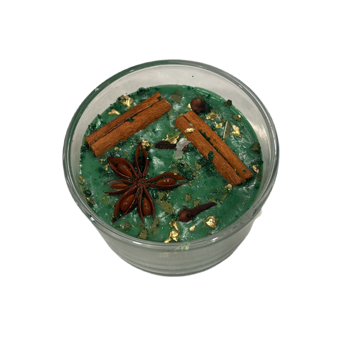 Homemade spiritual candle that will attract more abundance in your life. This candle was infused with money oil ( Money oil ingredients; Rice for wealth, cinnamon stick for good luck, basil for abundance, bay leaf to attract dollar bill for more dollar bills, money come to me 3x3 intention note ) Topped off with cinnamon bark, money, parsley, gold flakes everything that’s naturally attracts abundance!